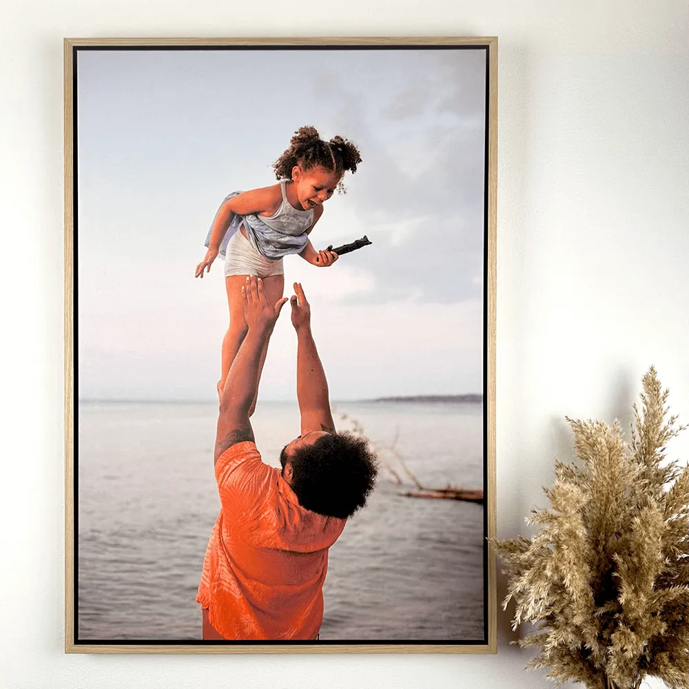 De premium Canvas in Lijst - XL onderscheidt zich door de felle kleuren, waardoor je mooiste foto’s en portretten echt tot leven komen! Daarbij geeft de zwarte binnenkant van de lijst een prachtige diepte en contrast aan het doek. De stevige houten lijst is beschikbaar in zwart en eiken en is bij levering klaar om op te hangen!